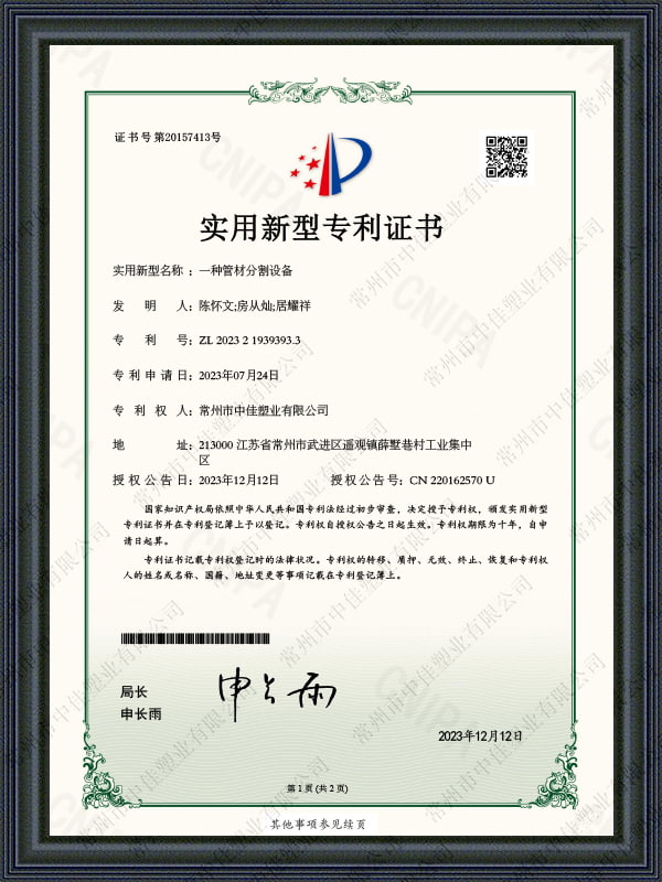 Changzhou Zhongjia Plastic Industry Co., Ltd. was established in 2006. It is an enterprise specializing in the research, development, production and sales of UPVC, CPVC plastic pipe fittings and valve products. Our featured products are plastic products such as UPVC/CPVC pipes, pipe fittings and valves. At present, we mainly supply industrial and water supply series pipes, pipe fittings and valves that meet national standards, American standards. Our products are sold to Southeast Asia, the Middle East, Africa, North America, South America, and are widely used in industry, agriculture, construction and other fields.